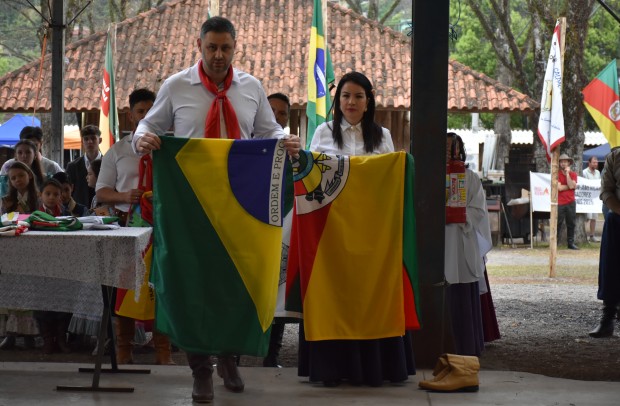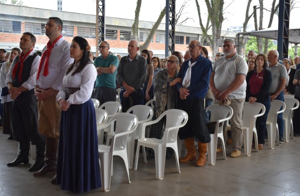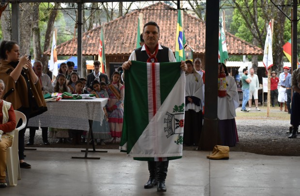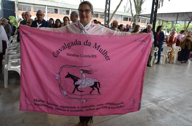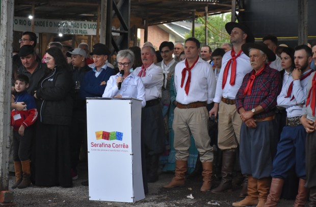 Também participaram da cerimônia o Prefeito Daniel Morandi, o Vice-Prefeito Eduardo Matielo e a Primeira-dama Jussandra da Silva, conduzindo as bandeiras do Brasil, do Rio Grande do Sul e de Serafina Corrêa.