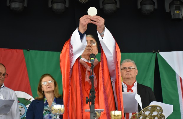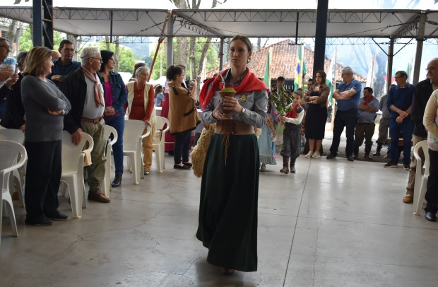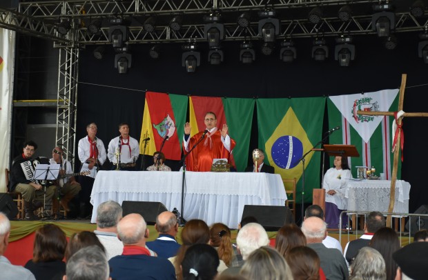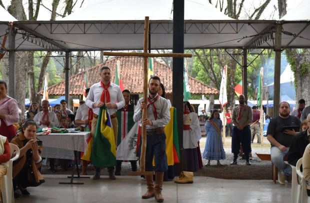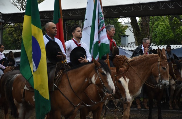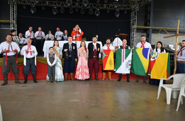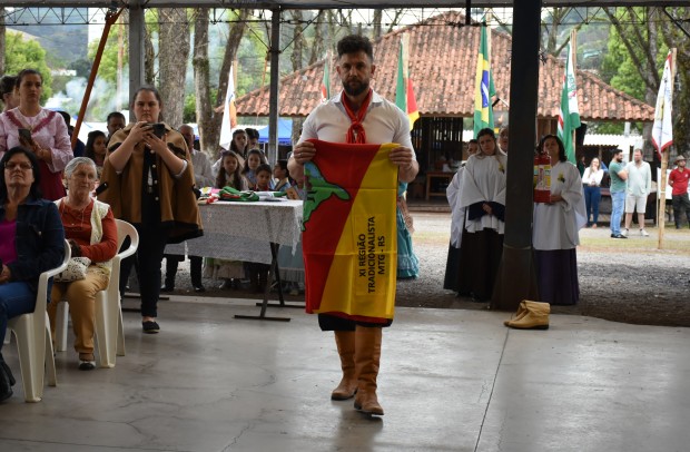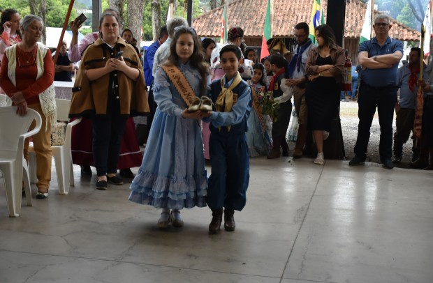 Com preces rimadas e termos típicos do linguajar campeiro, a missa emocionou os presentes. A cerimônia teve forte carga simbólica, com a participação de representantes de CTGs, piquetes e cavalgadas, que conduziram bandeiras e símbolos até o altar.