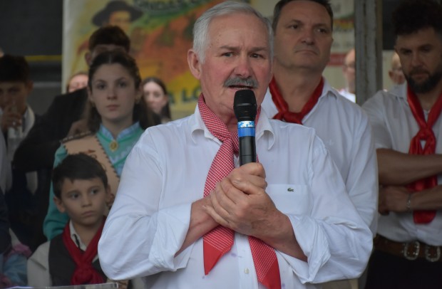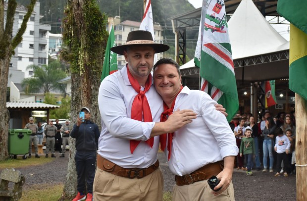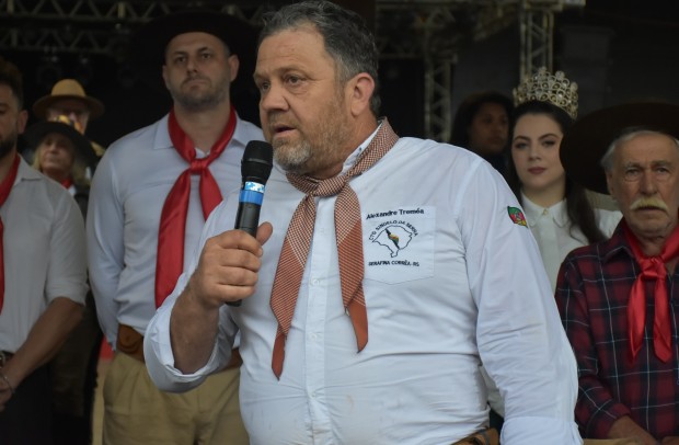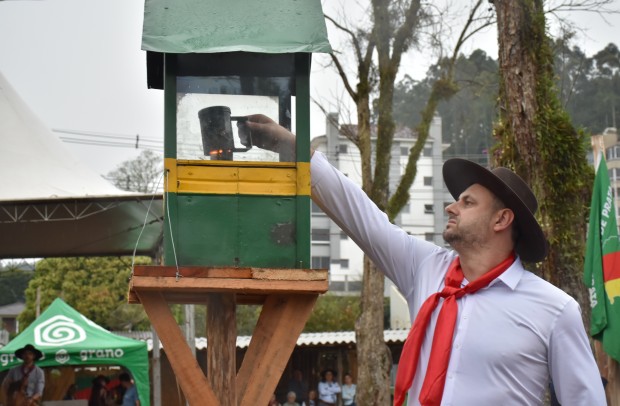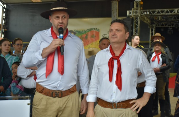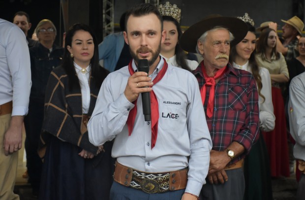 Um dos momentos mais marcantes foi o gesto de união entre os Patrões Alcides Alban, do CTG Galpão da Saudade, e Alexandre Tremea, do CTG Sinuelo da Serra, que entrelaçaram lenços vermelho e branco — antigos símbolos da rivalidade entre Maragatos e Chimangos — em sinal de paz e reconciliação.