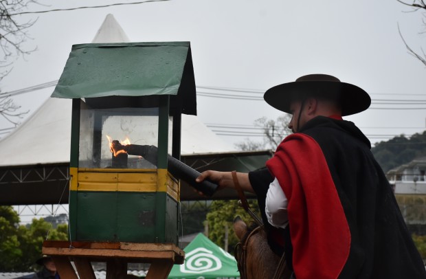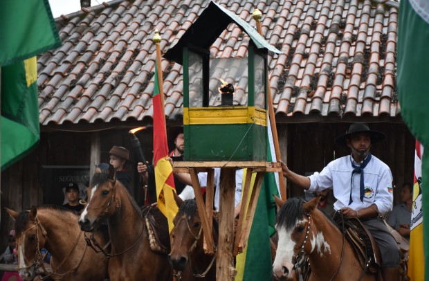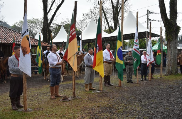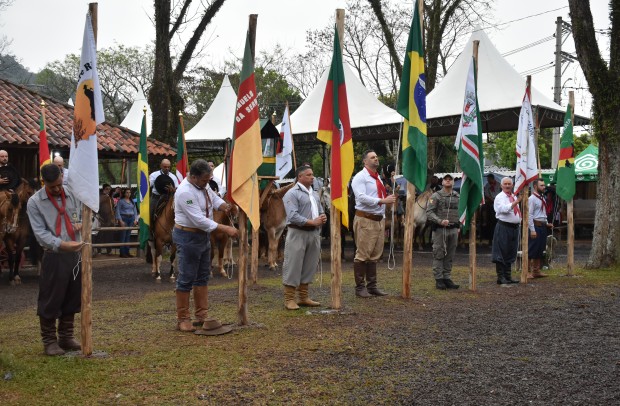 No retorno ao Acampamento, foi realizado o ato oficial de encerramento dos Festejos, com o arriamento das bandeiras, na presença do Prefeito Daniel Morandi, do Vice-Prefeito Eduardo Matielo, do Vereador Dirlei Cordeiro, do Comandante da Brigada Militar Ederson Moraes e de líderes tradicionalistas da cidade.