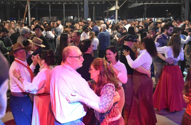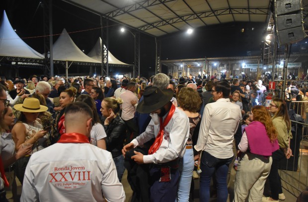 Além das atrações culturais e gastronômicas, os bailes foram um verdadeiro espetáculo à parte, marcando as noites do Acampamento com tradição, alegria e muita música boa. Reunindo milhares de pessoas diariamente, os bailes se firmaram como ponto alto do evento, celebrando a identidade gaúcha ao som de grandes nomes da música tradicionalista. Destaque para as animadas apresentações do Grupo Gauderiaço, Chiquito & Bordoneio, Grupo MANOTAÇO, Grupo Novo Embalo, Grupo Passiones, Grupo Tchê Kakareko, Jairo dos Teclados, Grupo Marca Pampeana, Grupo Vento Negro, Grupo Rodeio e Grupo Pago Serrano, que mantiveram o público dançando e celebrando em um clima de pura confraternização.